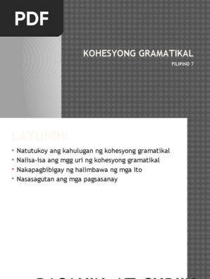 Kohesyong Gramatikal At Uri Ng Pang Abay