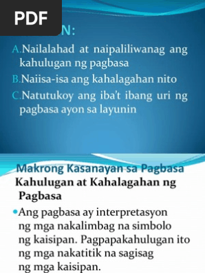 Ano ang kahulugan ng makrong kasanayan sa pagsulat. Mailahad kung paano magagamit ang dalawa sa apat na makrong-kasanayan sa kolaboratibong pagtuturo ng Filipinolohiya. Natutukoy ang layunin katangian at kahulugan ng pananaliksik. Artikulasyon ng mga ideya konsepto paniniwala at nararamdaman na ipinahahayag sa paraang pasulat.
